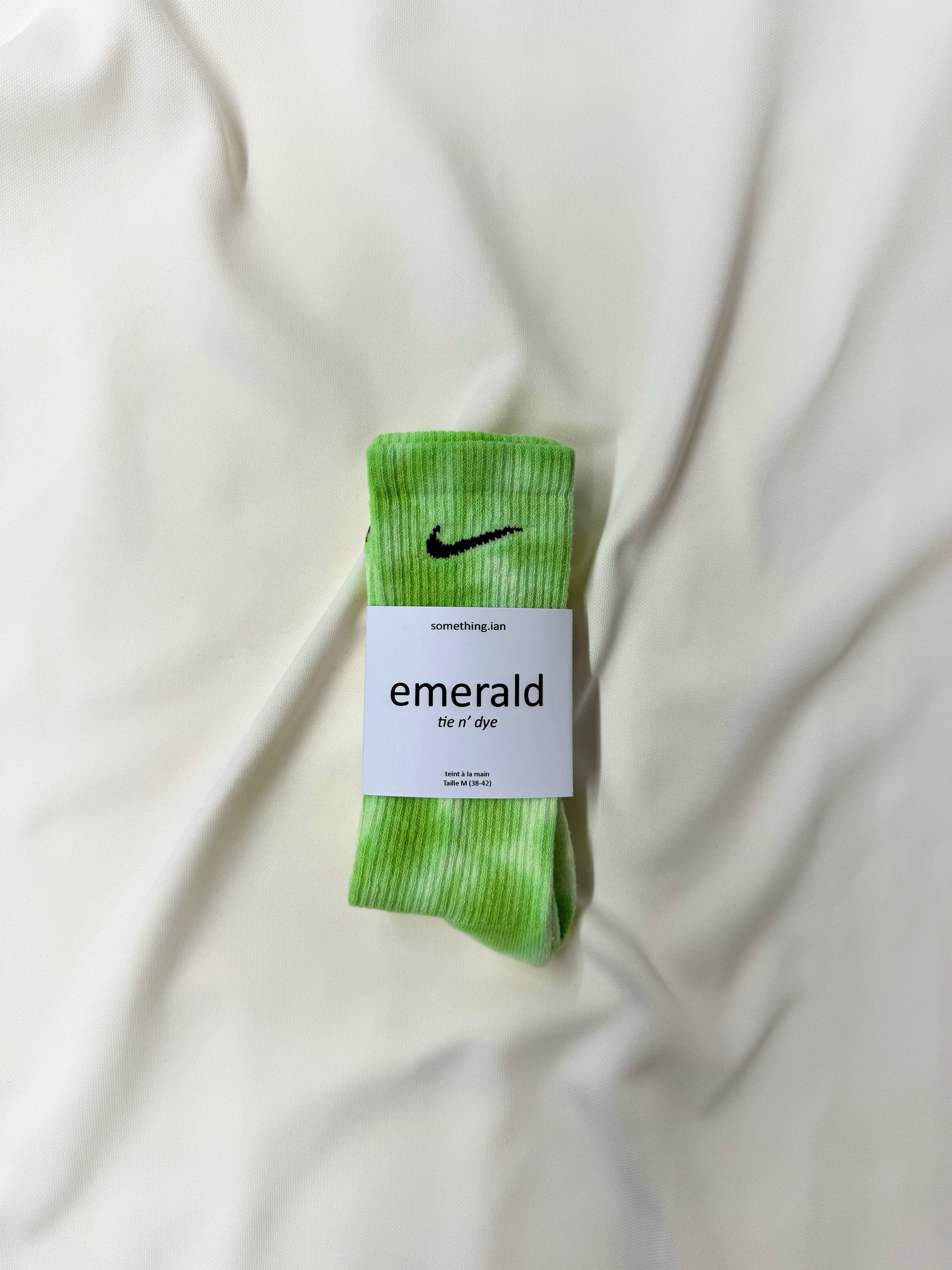 Fidèle à notre gamme Colorful, nous vous présentons « EMERALD Tie n' Dye », un motif tie-dye aux nuances menthe pastel. Teint à la main à la perfection avec des chaussettes Nike authentiques. L'accessoire parfait pour compléter chacune de vos tenues dans différents styles ! Couleur ‘poppin' pour l'été, cosy pour l'hiver et tendance toute l'année !